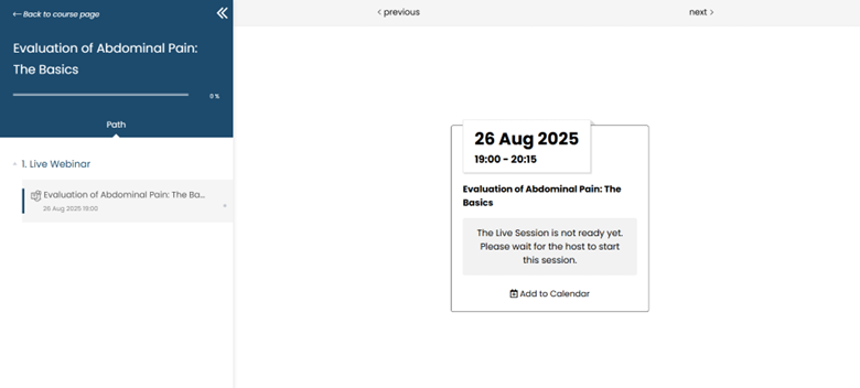 6. When the live session is ready, click on ‘Join Live Session’ to join the webinar.