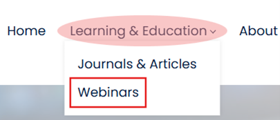 2. Click on ‘Learning & Education’ on the navigation bar (top) and select ‘Webinars’ from the drop-down list to view the available webinars.